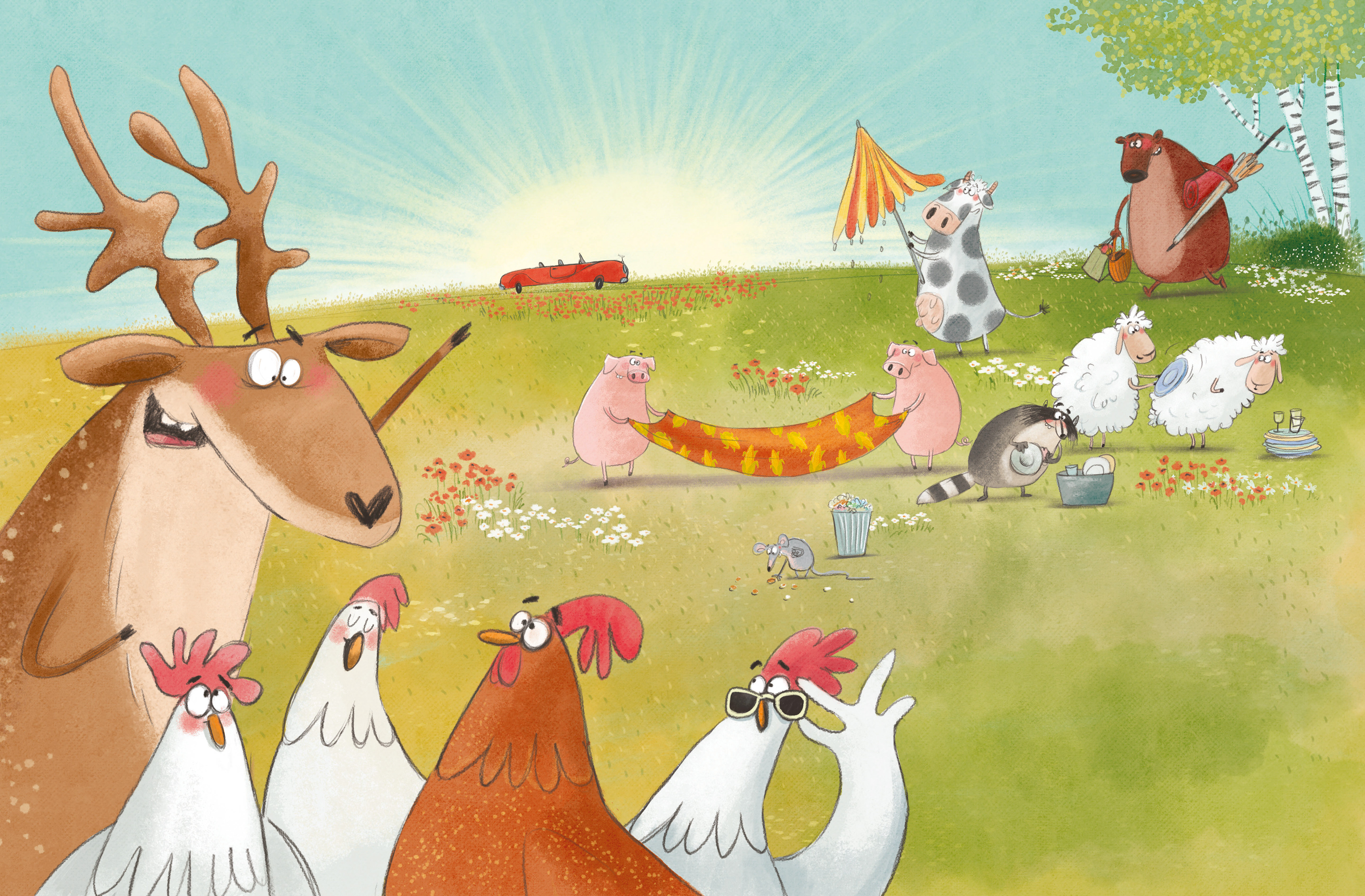 Platz da ihr Hirsche! is a German picture book about tolerance and sharing.